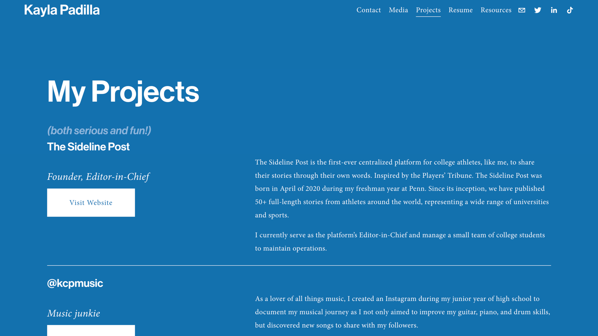 Use the “Portfolio” section to showcase your projects. Add galleries, links, or even videos.Add Your Contact Info: